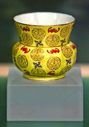 據(jù)了解,在清代,黃釉的多少標志著使用者身份的高低,由全黃釉到以黃釉為地,再到黃釉作彩,及至沒有黃色,等級規(guī)定非常嚴明,不得簪越。