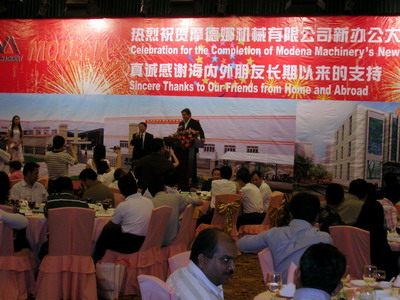 摩德娜公司“新辦公大樓落成”慶典答謝酒會,日前在佛山賓館舉行。出席酒會的有來自世界各地的供應商代表們、媒體代表們等400余人。為滿足現(xiàn)場眾多國外來賓的需求,發(fā)言現(xiàn)場特別采用了中英文進行直接翻譯;其中,摩德娜公司總經理管火金先生現(xiàn)場翻譯意大利語的場景尤為壯觀。