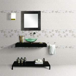 衛(wèi)浴的色調(diào)以黑白灰為主。墻面灰色的亞光瓷磚中間,因?yàn)橘N了一道西德石雕花墻磚,使單調(diào)的墻變得豐富起來(lái),在整體視覺(jué)上讓人感覺(jué)很舒服。