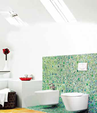 坐便器掛在了墻上,水箱安置在墻內(nèi),所有的東西都變得靈巧簡便了。這樣的設(shè)計還可以方便主婦打掃,那些坐便器底部的污垢終于無處藏身了。