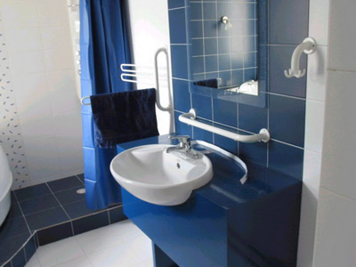 因?yàn)槠淇臻g的狹小,就特別需要將所有基本功能和特色凝縮在一起,而且,要盡量使有限的空間看上去更大些,更動(dòng)人些。在小浴室中,洗手盆和馬桶盡可能用較小的型號(hào),以節(jié)省有限的空間。此外,馬桶、盥洗盆可以采用懸壁式,讓這間浴室產(chǎn)生空間擴(kuò)大的感覺。小浴室中的所有水龍頭與配備最好都是以白色為主,這樣才有有相當(dāng)?shù)囊恢滦浴H羰浅涑馓囝伾麄(gè)空間會(huì)顯得過分雜亂。雖然這種衛(wèi)生間面積很小,但并不必然比大浴室缺少吸引力。