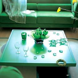 燈光可由強光改為弱光,盡量避免橘紅等色光,不妨使用落地?zé)、隱藏式光源,來加強局部照明,使房間氣氛更為柔和。亦可將燈罩換成翡翠、天藍(lán)等冷色調(diào),來改變光源效果。
