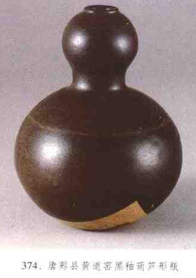唐至元代瓷窯。窯址在郟縣,已發(fā)現黃道、黑虎洞、石灣河3處遺址。黃道、黑虎洞均發(fā)現唐至元代標本,石灣河僅發(fā)現元代標本。唐代遺物有黑釉斑點花瓷和黃釉品種;稍晚一些有白釉綠彩器,白釉略微泛黃,綠彩呈碧綠色,此品種在河北、河南、山東、陜西、安徽的10余處瓷窯中,以郟縣窯所產色彩最美。元代遺物有磁州窯風格的白地黑花、鈞釉器物。白地黑花四系瓶,與禹縣扒村窯的一樣,上半部白釉,以褐彩書“春夏秋冬”4字,下半部施褐釉。宋代北方流行的五角或六角盤,郟縣窯亦有燒制,釉為褐釉,釉下施白色化妝土,盤里心為五角形露胎,是為疊燒而形成的—種裝飾方法。(見圖374)