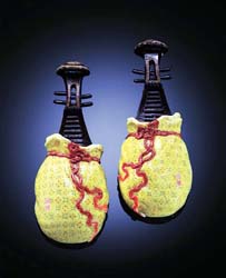 壁瓶在清代各朝均大量生產(chǎn),形式更多,其中乾隆時期的壁瓶更是達到了登峰造極的地步。乾隆時期的壁瓶,從紋飾來看,無論是釉上還是釉下的彩繪,或者是堆塑、鏤空、雕刻、貼花等工藝,都是非常講究裝飾工藝的,花色品種無不具備。其中一些釉色如真品一樣,配上形象逼真的造型,神形兼?zhèn)洌缧非嘤苑鲁鲂沸伪谄、以翠綠釉仿出白菜壁瓶、以鱔魚黃釉仿出鰱魚形壁瓶等,皆鬼斧神工,形象生動。此次蘇富比拍賣行推出的“束帶琵琶包袱”壁瓶,就是通過釉色來模仿琵琶以及外面的包袱,可以說是栩栩如生,這也是受到市場追捧的重要原因。在乾隆時期還常以御題詩句配合壁瓶畫面,在2004年香港蘇富比的春拍上,清乾隆·御制剔紅雕趕珠龍紋嵌黃玉御題詩壁瓶,成交價達到了74.4萬港元,這也是目前此類壁瓶拍賣的最高價。