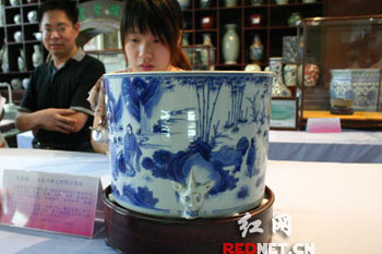 近年以來,明末清初的青花大筆筒成為瓷器收藏界的新寵,價(jià)格不斷攀升,究其原因是后世仿造青花作品較多,但大筆筒的仿造較少,該只明崇禎青花竹林七賢大筆筒估價(jià)約為180萬元。