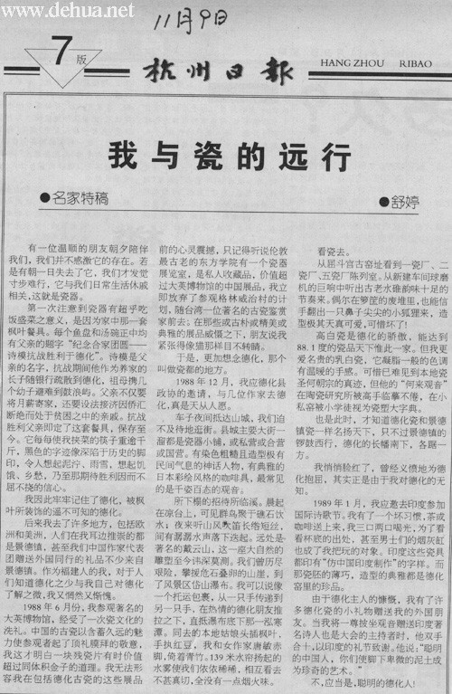 1988年12月,我應(yīng)德化縣政協(xié)的邀請,與幾位作家去德化,真是天從人愿。