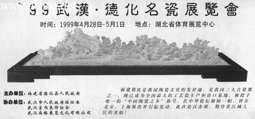 福建德化是我國陶瓷文化的發(fā)祥地,是我國三大古瓷都之一,現(xiàn)已成為全國最大的工藝瓷生產(chǎn)和出口基地,被授予唯一的“中國陶瓷之鄉(xiāng)”稱號,在中華瓷壇獨樹一幟,曾在北京、上海展出并引起轟動,此次赴漢辦展,期待著江城人民的光臨!