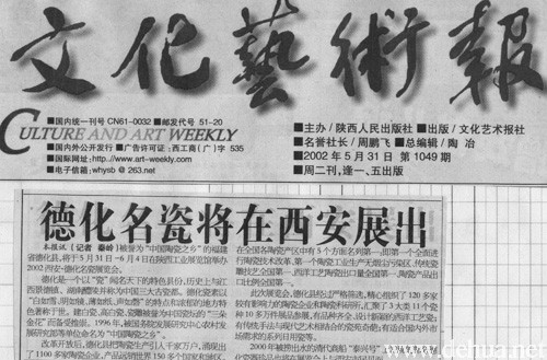 本報(bào)訊(記者秦嶺)被譽(yù)為“中國(guó)陶瓷乏鄉(xiāng)”的福建省德化縣,將于5月31日一6月4日在陜西工業(yè)展覽館舉辦2002西安·德化名瓷展覽會(huì)。德化是一個(gè)以“瓷”聞名天下的特色縣份,歷史上與江西景德鎮(zhèn)、湖南醴陵并稱為中國(guó)三大古瓷都。德化瓷素以“白如雪、明如鏡、薄如紙、聲如磬的特點(diǎn)和濃郁的地方特色著稱于世。建白瓷、高白瓷、瓷雕被譽(yù)為中國(guó)瓷壇的“三朵金花”而備受推崇。1996年,被國(guó)務(wù)院發(fā)展研究中心農(nóng)村發(fā)展研究部等單位命名為“中國(guó)陶瓷之鄉(xiāng)”。