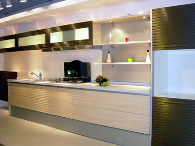 對(duì)于廚房家具色彩明度的選擇,應(yīng)選擇那些能提高室內(nèi)照度,保證采光與衛(wèi)生的色彩明度為主。無(wú)論是廚房環(huán)境大小,一般都采用明度較高的色彩,較高的廚房家具色彩明度能夠表現(xiàn)環(huán)境明快、整潔衛(wèi)生的特點(diǎn)。同時(shí),較高的色彩明度還能有效地調(diào)節(jié)室內(nèi)光線。明度較高,顯得比較干凈整潔的色彩有比較純的藍(lán)色、黃色和各種明度較高的淡藍(lán)、淡紅、淡黃色系。