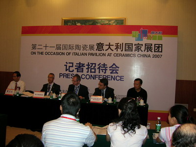 21屆中國國際陶瓷工業(yè)展覽會開幕之際,意大利國家展團于5月30日上午假廣州市中國進出口商品交易會(琶洲)展館國際會議中心舉辦“記者招待會”。意大利對外貿易委員會、意大利陶瓷機械及設備生產商協(xié)會代表同中國陶瓷工業(yè)協(xié)會副秘書長黃芯紅、佛山陶瓷行業(yè)協(xié)會秘書長尹虹等出席并回答了與會眾多記者的提問。
