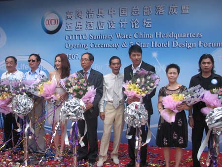 上午11點(diǎn),高陶潔具中國(guó)總部新展廳在一片歡樂(lè)祥和的氣氛中盛大開(kāi)幕,主辦方高陶建材特意邀請(qǐng)了香港著名影星苗僑偉、溫碧霞出席剪彩儀式,剪彩儀式還邀請(qǐng)到了一批建筑行業(yè)的專家和學(xué)者,他們是現(xiàn)代裝飾雜志社副社長(zhǎng)王平先生、中國(guó)建筑學(xué)會(huì)室內(nèi)設(shè)計(jì)分會(huì)會(huì)長(zhǎng)勞智權(quán)、CIID深圳專業(yè)委員會(huì)劉力平秘書長(zhǎng)、高陶潔具中國(guó)總代理高陶建材董事長(zhǎng)彭洪萼先生、高陶潔具中國(guó)總代理副總經(jīng)理周振宇先生、CIID東莞專業(yè)委員會(huì)會(huì)長(zhǎng)兼新展廳設(shè)計(jì)師麥德斌先生、高陶中國(guó)各地的代理商以及來(lái)自廣州的知名設(shè)計(jì)師丁武、李智、尹鐵等,開(kāi)幕結(jié)束后,大家紛紛在新展廳參觀留念。