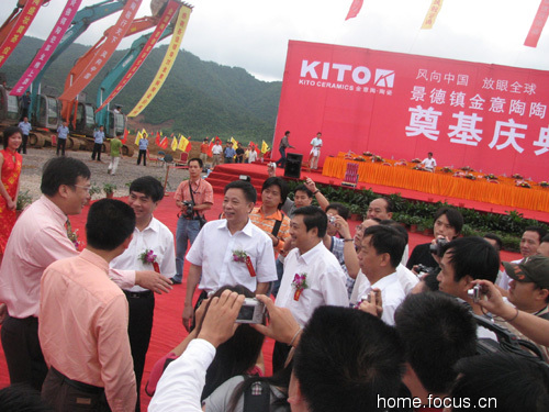 2007年6月15日,景德鎮(zhèn)金意陶陶瓷有限公司在景德鎮(zhèn)浮梁縣三龍鄉(xiāng)舉行了盛大的奠基儀式,江西省省長吳新雄、副省長洪禮和,景德鎮(zhèn)市市委、市政府,及浮梁縣縣委、縣政府領(lǐng)導(dǎo)等各級領(lǐng)導(dǎo),中國建筑衛(wèi)生陶瓷協(xié)會會長丁衛(wèi)東,佛山市禪城區(qū)主要領(lǐng)導(dǎo),佛山金意陶陶瓷有限公司董事長兼總經(jīng)理何乾,佛山金意陶陶瓷有公司國際、國內(nèi)代理商、供應(yīng)商、湖北商會代表以及來自江西、廣東及國內(nèi)知名的報紙、電視、雜志和網(wǎng)絡(luò)媒體朋友共500多人出席了這次盛大的奠基儀式。