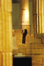 為了營(yíng)造這個(gè)希臘世界,展覽的第二部分《古希臘人的神靈世界》將在復(fù)原的古希臘帕特農(nóng)神廟遺址內(nèi)展出,“我們仿造了這個(gè)希臘遺址,讓觀眾在展覽中走上一個(gè)高臺(tái)就像走上那個(gè)神廟一樣,”黃雪寅介紹第二部分所有的雕像全部都是裸展,而不是放在玻璃櫥窗內(nèi),“這樣可以讓觀眾直接與神靈對(duì)話,令其身臨其境。”