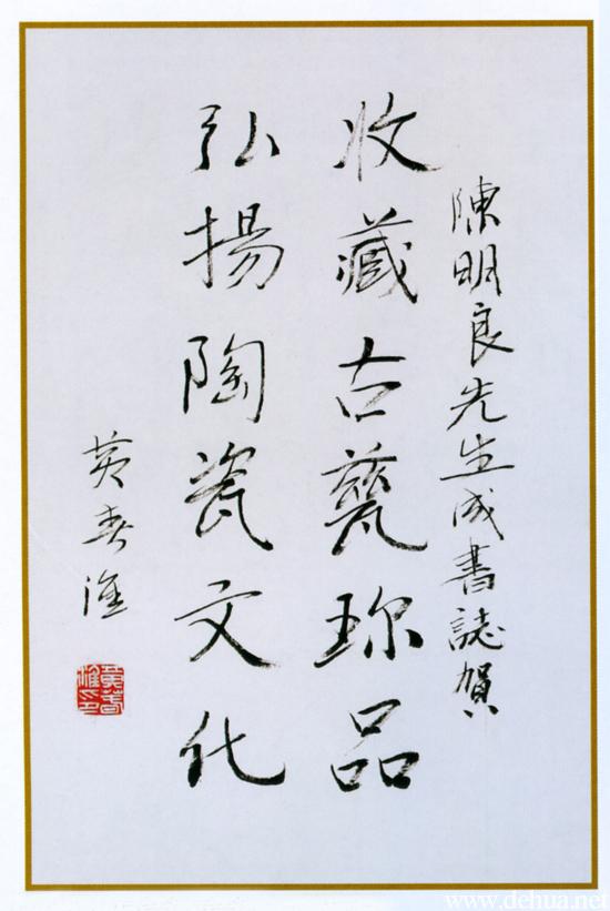 ▲國家文物鑒定委員會常務委員耿寶昌為本書與“瓷藝堂”題字