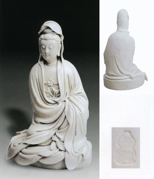觀音跌坐,衣巾颯拂,儀態(tài)宛然,神韻嫻灑,超凡脫俗,令人愛不釋手。背部鈐有“何朝宗”葫蘆形印章款。