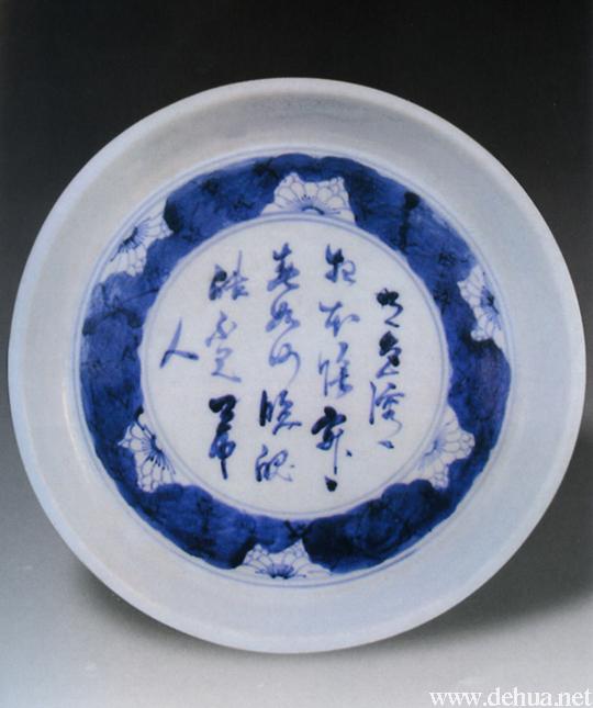 ▲清早期 青花詩詞紋茶盤(樸園主人藏) 口徑25.5厘米