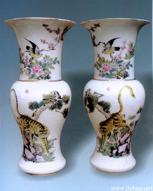 ▲民國 五彩“猛虎下山”紋鳳尾尊(對)(施政強(qiáng)藏) 高33厘米,口徑16厘米