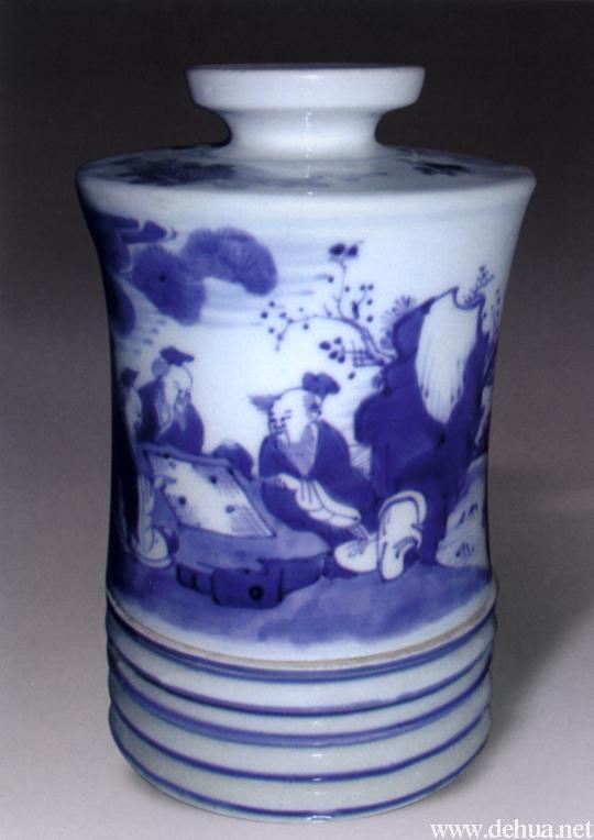 ▲清早期 青花對(duì)弈紋油燈(劉以溪藏) 高19.5厘米,口徑11.5厘米