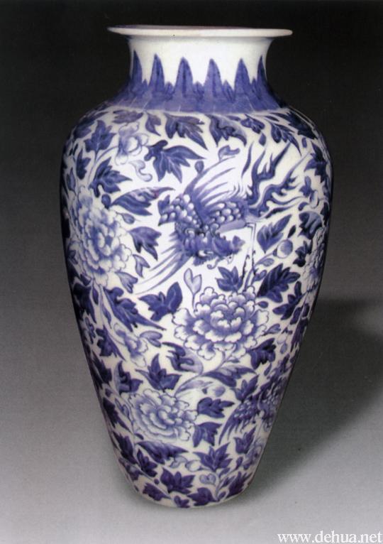 ▲清早期  青花鳳凰牡丹紋瓶(劉以溪藏)  高39厘米,口徑14厘米