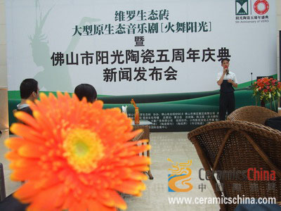 陽光陶瓷公司市場部黃云岳經(jīng)理在發(fā)布會上給媒體記者介紹了公司的整體情況,并預(yù)報了陽光公司將于9月6日舉行的大型音樂劇《火舞陽光》的具體細(xì)節(jié),引起全體媒體朋友的廣泛關(guān)注。