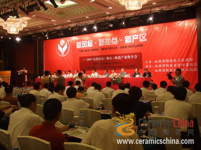 在會議上,陽泉市黨政領導和當?shù)靥沾善髽I(yè)代表為300多名來自各地各單位的嘉賓介紹了陽泉的資源優(yōu)勢。引起與會者尤其是佛山市政府官員和本地陶瓷企業(yè)領導代表的密切關注。