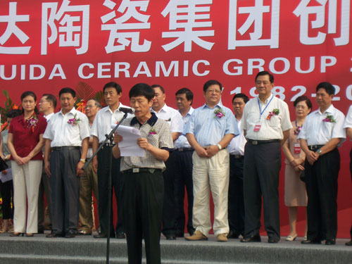 慶典儀式上,惠達集團執(zhí)行總經理王彥慶首先致歡迎辭,國內經銷商代表、國外客商代表、董事長王惠文、唐山市市長張國棟、豐南區(qū)委書記劉建立、中國建材協(xié)會黨委書記孫向遠等領導發(fā)表了熱情洋溢的講話,河北建材工業(yè)協(xié)會發(fā)來了賀電,對惠達集團取得的成績表示祝賀,對惠達陶瓷集團的明天寄予厚望。