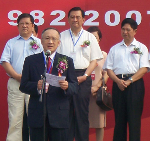 上午8:30分,隆重的慶典儀式正式開始。出席慶典儀式的有國務院參事室副主任蔣明麟,中國建筑材料聯(lián)合會黨委書記、常務副會長孫向遠,河北省人大常委會副主任白潤璋,全國工商聯(lián)副主席、原國家工商行政管理總局副局長甘國屏,河北省工商局副局長王國忠,唐山市委副書記、市長張國棟,市委常委、秘書長陳學軍,副市長王久宗,市人大主任鐘清杰,市政協(xié)主席張耀華,唐山市工商局、海關、商檢、外貿局領導,中國五礦化工商會領導,豐南區(qū)四大班子領導以及豐南區(qū)各局、各鄉(xiāng)鎮(zhèn)、大企業(yè)代表,以及來自全國各地的經銷商代表,來自美國、俄羅斯、韓國、孟加位國等國外客商代表,惠達員工代表等共計6000人參加了慶典。