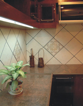 墻面鋪裝:采用45度斜鋪與垂直鋪裝結(jié)合這使墻面由原來較為單調(diào)的幾何線條變得豐富和有變化,增強了空間的立體感和活躍氣氛。
