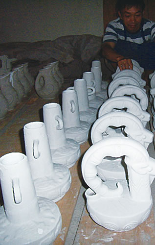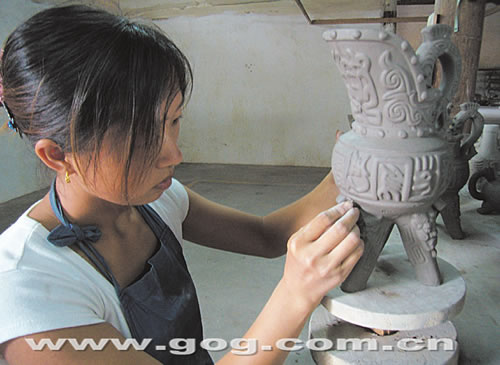 牙舟鎮(zhèn)冗平街的青年張祿麒在廣東打工已經(jīng)有14年了。去年10月他返回家鄉(xiāng),投資8萬元?jiǎng)?chuàng)辦了“牙舟工藝美術(shù)陶瓷廠”,在牙舟開始第一家以“廠”的名譽(yù)進(jìn)行陶瓷生產(chǎn)。7月26日,記者在采訪他時(shí),他說出了回家辦廠的初衷,他父親這一代,已經(jīng)是第七代制陶人了,“現(xiàn)在的年輕人都不愿意摸牙舟陶了,以前的老藝人也只有六七個(gè)了。如果再這樣下去,牙舟陶就真的失傳,牙舟陶就再也沒有明天了”,張祿麒決定回家接過老父親的手藝,把牙舟陶傳下去。經(jīng)過快一年的摸索,張祿麒的牙舟陶廠已經(jīng)發(fā)展得相當(dāng)不錯(cuò)了,他滿臉笑意地說:“現(xiàn)在根本就不用我出去找市場,有人上門來收,只怕做不出來。貴陽、甘肅、香港的客商都有。”但同時(shí),張祿麒說,光有自己一家辦廠還是不行,他希望有更多的人來這里投資辦廠,共同做大牙舟陶的品牌和規(guī)模,“我不怕競爭,競爭就會(huì)有市場,就會(huì)了質(zhì)量”。