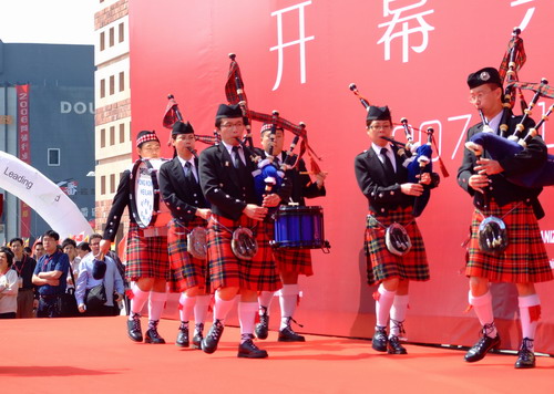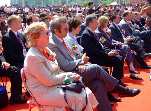 4月18日上午,和風麗日。30多名來自德國、意大利等國家的歐洲客商走出華夏新中源大酒店,結伴朝佛山國際會展中心走去。此時,佛山國際會展中心已是彩球飄揚,雄獅勁舞。第九屆佛山(國際)陶瓷博覽交易會開幕式會場商客云集,德國拓歐集團、佛亞展覽(香港)有限公司總裁托馬斯、中國陶瓷工業(yè)協會理事長楊自鵬、佛山市副市長李子甫、中國建筑衛(wèi)生陶瓷協會會長丁衛(wèi)東、禪城區(qū)副區(qū)長梁炳軍、佛山市陶瓷行業(yè)協會秘書長尹虹等有關領導及葉德林、何新明、黃建平、張孟友等一批中國建陶巨頭掌門人于主席臺就坐。隨著蘇格蘭風情樂隊的樂器演奏,第九屆佛山(國際)陶瓷博覽交易會在眾人的期盼中拉開了序幕。