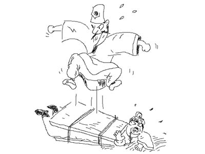 有個(gè)駝背信以為真,就請(qǐng)他醫(yī)治。他拿了兩塊木板,不給駝背開藥方,也不給他吃藥,把一塊木板放在地上,叫駝背趴在上面,用另一塊木板壓在駝背的身上,然后用繩索綁緊。接著,便自己跳上板去,拼命亂踩一番。駝背連聲呼叫求救,他也不理會(huì),結(jié)果,駝背算是給弄直了,人也“嗚呼哀哉”了。