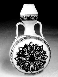 這件傳世扁瓶交到他手中時(shí),已經(jīng)碎成十幾瓣了,頸、環(huán)、腹等嚴(yán)重?cái)嗔,修?fù)難度極大。蔣道銀經(jīng)過清洗、粘接、補(bǔ)缺、著色、上釉等程序,終于使扁瓶死而復(fù)生,重新煥發(fā)出熠熠的神采。