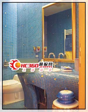 a玻璃馬賽克色彩豐富,配色方便,在燈光下更能變化出深淺不一的夢(mèng)幻效果,因此適合用于光線較暗或沒有自然光的衛(wèi)浴間。