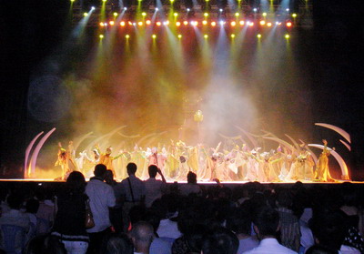據(jù)了解,“火舞陽光·太陽神鳥原生態(tài)音樂劇”導(dǎo)演是出任2008奧運會總副導(dǎo)演的陳維亞,該劇的成功創(chuàng)作離不開他的藝術(shù)造詣;整場音樂劇的音樂總創(chuàng)作是連續(xù)十年擔(dān)任中央電視臺春節(jié)文藝晚會音樂總監(jiān)的卞留念,此次音樂劇的所有歌曲均出于他的靈感;燈光的總設(shè)計出自素有中國舞臺第一燈、2008年奧運會燈光總設(shè)計沙曉嵐的光彩手筆。加上演出單位“成都藝術(shù)劇院”的演出團隊,整臺音樂劇前后動用300名演職人員與500套炫麗服飾,他們扮演不同的角色演繹一場精彩絕倫的音樂會,如此高端的企業(yè)文化晚會在中國建陶行業(yè)可謂是盛況空前。