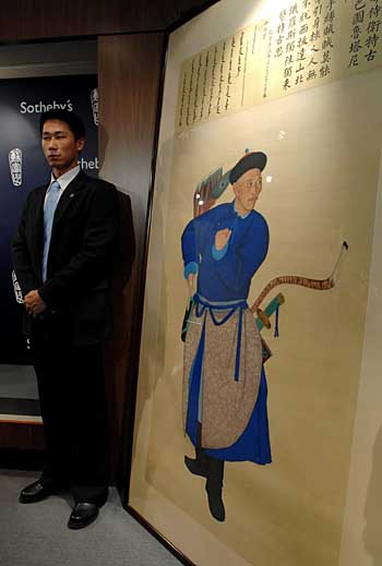 圖為清乾隆帝御制的“平定西域紫光閣五十功臣像贊頭等侍衛(wèi)勇巴圖魯伊薩穆”的設(shè)色絹本掛軸,估價(jià)超過1200萬港元。