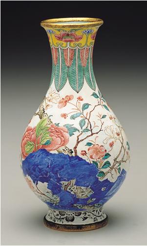 琺瑯彩是一種非常名貴的釉上彩,為釉上彩之冠。琺瑯彩瓷是清康熙朝中晚期時,將西洋金屬胎畫琺瑯的琺瑯彩料,移植到瓷胎上的一個的創(chuàng)舉。
