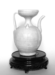 宋代,從文學(xué)、繪畫、戲劇、音樂乃至瓷器,都形成了一個時代的鮮明風(fēng)格和美學(xué)風(fēng)標。從實物載體來看,我國的陶瓷工藝從唐及宋才進入了真正意義上的全盛期,造型生動多變,釉彩瑰麗多彩,裝飾華美多姿,窯口爭奇斗艷,其工藝性與藝術(shù)性的結(jié)合亦日趨自然完美。宋代的瓷窯遍布全國各地,而且出口已成規(guī)模,主要窯口分為“六大窯系”,即北方的定窯系、鈞窯系、耀州窯系、磁州窯系和南方的龍泉青瓷窯系、景德鎮(zhèn)青白瓷窯系。筆者所收的南宋景德鎮(zhèn)影青瓜棱執(zhí)壺,是典型的南窯景德鎮(zhèn)系看家瓷器。