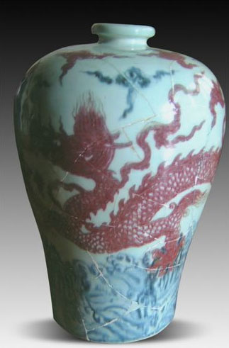 明永樂青花釉里紅海水云龍紋梅瓶 景德鎮(zhèn)明御窯廠遺址出土