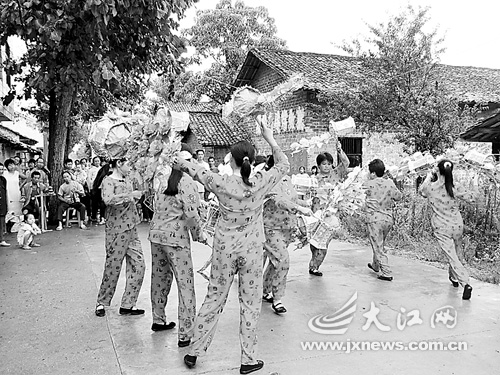 “十一”期間,上高縣充分發(fā)揮具有本土文化韻味的特色文化優(yōu)勢,進村入企,與群眾共度國慶佳節(jié),歡樂遍及全縣城鄉(xiāng)的每一個角落。圖為該縣鎮(zhèn)渡鄉(xiāng)花燈隊在苑新村為村民表演《鬧花燈》。楊德峰 本報記者羅德斌攝
