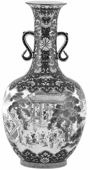 乾隆時期的粉彩有如下特點:1.乾隆粉彩利用粉彩粉潤柔和的質(zhì)感,用粉化的各種彩料仿制各種工藝品,能準確地表現(xiàn)出所仿之物的色彩和質(zhì)感,可謂惟妙惟肖。2.乾隆粉彩有一個獨有的特征,即器物口部及底部都施松石綠釉。松石綠釉非常淺淡光潤,釉面猶如粥皮,由于是一種低溫彩釉,釉面常常帶有細小的紋片。3.乾隆官窯粉彩的紋飾一般是“大內(nèi)”送來的圖樣,主題紋飾按不同時節(jié)都有嚴格規(guī)定,主紋是纏枝花,分別加施變龍、變鳳、蝙蝠或纓絡(luò)、八吉祥等,組成各種祥瑞吉慶、美意延年內(nèi)容的圖案。4.乾隆粉彩的造型工藝更是精益求精,不論是高達一米多的大型陳設(shè)瓷,還是小至幾厘米的扳指兒、鼻煙壺,造型都非常規(guī)整,很少出現(xiàn)夾扁或歪塌現(xiàn)象。 此件清乾隆粉彩春燈嬰戲雙耳瓶為乾隆粉彩的代表作品,無論從色彩、器形、工藝上都有很大的特點,尤其在文化內(nèi)涵上更是反映了封建帝王希望“百子千孫”、“江山永固”的思想。同時也反映了千百年來勞動人民盼望有子傳宗接代的良好愿望。此瓶細長頸,撇口,耳作如意形,喻“平安如意”,碩腹,平底,矮圈足,口及耳描金,頸至肩及腹底以如意云頭為邊,在紅地上畫纏枝番蓮間飾蝙蝠。腹部彩繪高山流水,庭舍樓臺,配以樹石花草,眾嬰孩嬉戲其間,或舞龍或提燈,足邊描回紋,器內(nèi)及底均施湖綠色釉,底描紅書“大清乾隆年制”六字篆款。
