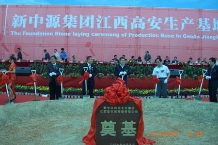 繼2007年5月新中源集團(tuán)高安生產(chǎn)基地成功簽約以來(lái),時(shí)隔短短的五個(gè)月,10月9日,新中源集團(tuán)高安生產(chǎn)基地舉行了隆重的奠基儀式,江西省副省長(zhǎng)孫剛,國(guó)土資源廳廳長(zhǎng)劉積福,新中源陶瓷企業(yè)集團(tuán)董事局主席霍熾昌、宜春市委主要領(lǐng)導(dǎo)、新聞媒體等約600人出席了儀式,宜春市委副書記、市長(zhǎng)龔建華在奠基儀式上致辭。