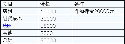 前期投入:店面為15平方米,前期投入8元,具體如下:月租1萬元,2萬元店鋪押金,1.8萬元裝修費(fèi),貨物成本3萬元,還有其他雜費(fèi)2000元,最大成本就是店鋪租金。