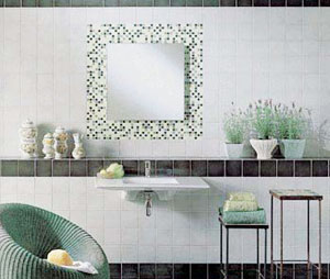 鏡子周圍用細(xì)碎的馬賽克拼貼,形成空間的視覺焦點,配之以小巧靈性的陶瓷飾品或盆栽花卉。