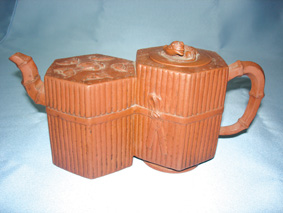 紫砂雙筒竹束壺