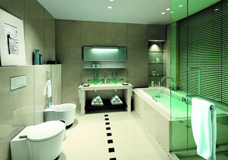 追逐自然之氣:現(xiàn)在流行“負(fù)離子”,衛(wèi)浴室也不甘為人后。有人建議養(yǎng)一些喜陰的植物,如嫌植物太難養(yǎng),可以買(mǎi)一種氧吧磚,一幅類似于掛畫(huà)的氧吧磚據(jù)說(shuō)能起到植物的作用,而且不用打理,又可裝飾衛(wèi)浴室。