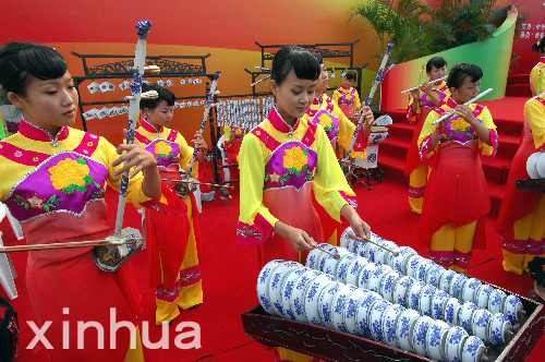 2007年10月18日,2007中國景德鎮(zhèn)國際陶瓷博覽會在江西景德鎮(zhèn)開幕,來自海峽兩岸和日本、韓國的80位陶瓷樂器演奏家在開幕式上聯(lián)手演奏了《茉莉花》《北國之春》《月亮代表我的心》《阿里郎》等曲目。