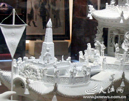 本報(bào)景德鎮(zhèn)訊 記者王景萍攝影報(bào)道:在中國(guó)申奧成功后,景德鎮(zhèn)市的工藝美術(shù)師劉松林耗時(shí)6年,制作了一艘目前世界上最大的瓷雕奧運(yùn)龍船。21日,劉松林表示,自己想把這艘龍船獻(xiàn)給奧組委。