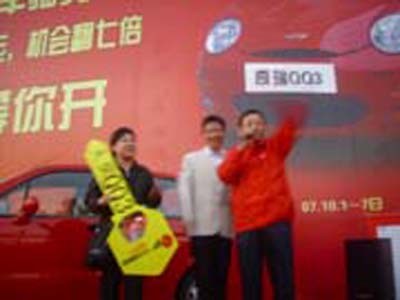 風(fēng)景club小區(qū)的新業(yè)主張女士幸運(yùn)摘得QQ大獎(jiǎng),在一片歡呼聲中,她接過了QQ車的“ 金”鑰匙。名正實(shí)規(guī)“幸運(yùn)大PK,QQ開回家!