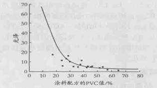 實驗結果表明 ,PVC 值為 0. 5 的試片最先起泡 , 然后是 PVC 值為 0. 25 的起泡 , PVC 值為 0. 35 的最后起泡。這是因為當 PVC > CPVC 時 , 樹脂量相對較少 , 無法填滿顏填料之間的全部體積 , 涂膜中出現(xiàn)空隙 , 故涂層耐滲水性較差 ; 而 PVC < CPVC 時 , 涂膜中有 “ 多余 ” 的樹脂 , 其涂膜緊密堆積程度必然低于 PVC = CPVC 時的涂層 , 涂層耐滲水性也必降低 , 先于 PVC = CPVC 時的涂層損壞?紤]試驗誤差范圍 , 可確定涂膜 CPVC 范圍與前述基本一致。