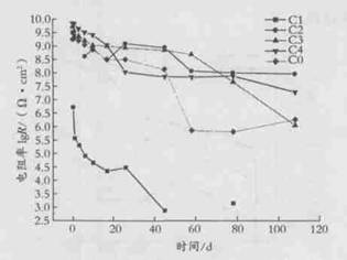 圖 5 不同涂層電阻值隨浸泡時間的變化曲線